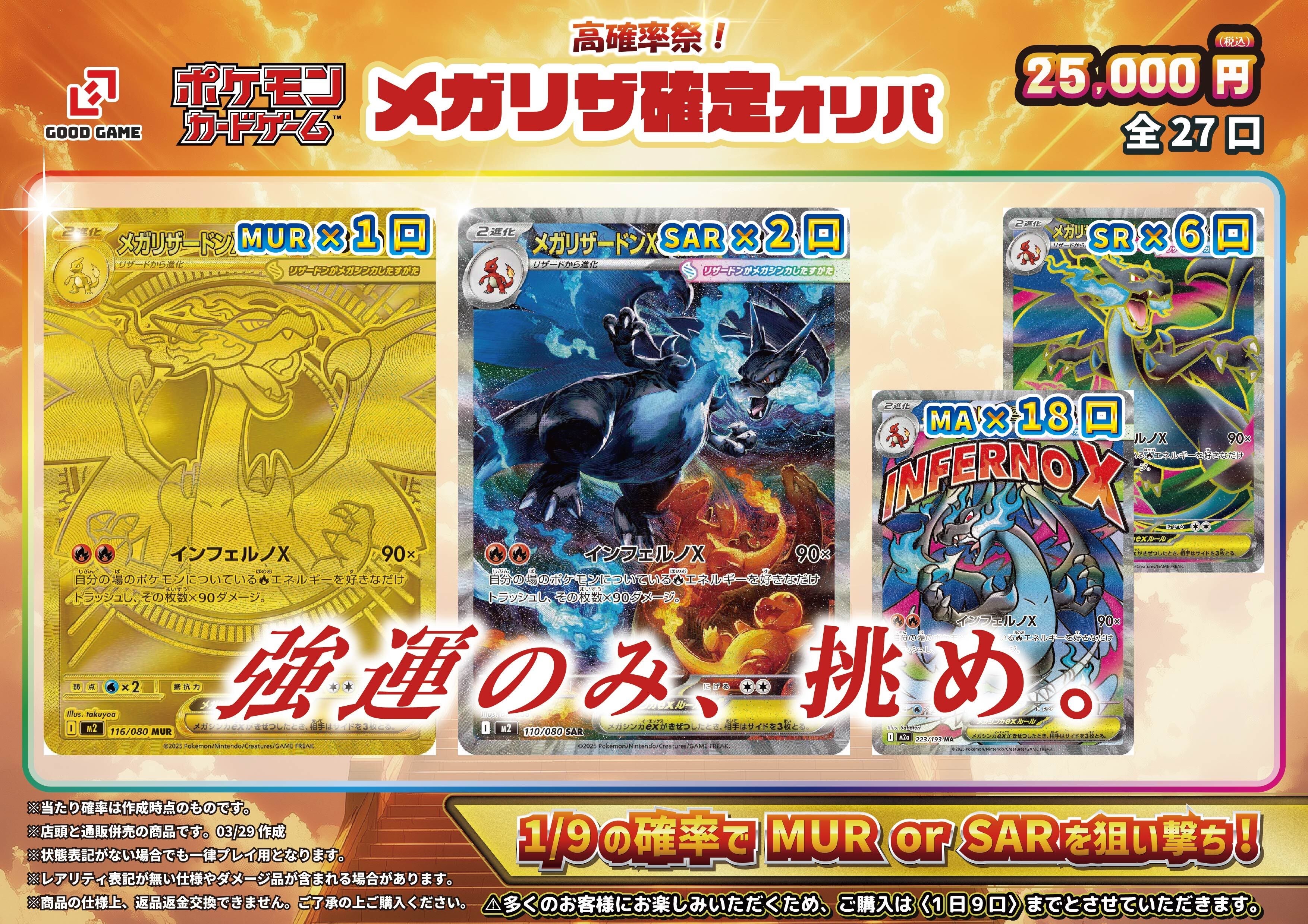 【ポケカオリパ】当たり確率1/9 メガリザ確定オリパ 25,000円